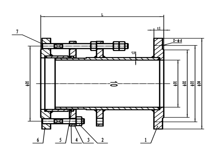 The double flange limit expansion joint is applicable to the connection between both sides of the product and the flange. During installation, adjust the connection length between both ends of the product and the flange, tighten the gland bolts diagonally and evenly, and then adjust the limit nut, so that the pipeline can expand freely within the range of expansion and contraction, lock the expansion and contraction, and ensure the safe operation of the pipeline. It is applicable to the pipes connected with flanges on both sides. During installation, adjust the installation length between the two ends of the product and the flange, raise funds diagonally and tighten the gland bolts evenly to make them as a whole with a certain displacement, which is convenient for adjustment according to the on-site size during installation and maintenance. During operation, the anti axial thrust can be transmitted to the whole pipeline. It can reduce the pressure thrust (blind plate force) of the connected parts and compensate the installation error of the pipeline. The double flange force transmission joint can not absorb the axial displacement. Double flange force transmission joint is mainly used for loose connection of pump, valve and other accessories.